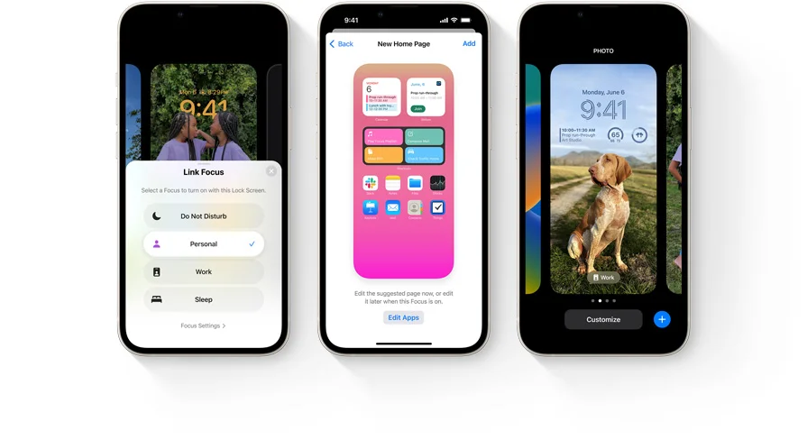 Focus modes made their debut last year with iOS 15 and they have been refined and expanded in iOS 16. Now your choice of Lock Screen and Notification settings can be linked to Focus modes. When setting up a particular mode, iOS 16 will recommend Home Screen and Lock Screen configurations with related wallpapers and widgets.