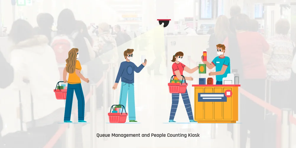 The kiosk software processes the information using people counting cameras installed at entrances. Owners of establishments can also install cameras in other parts of their building. They can use the cameras to determine the number of customers then feed the information to a digital signage to show expected wait times.