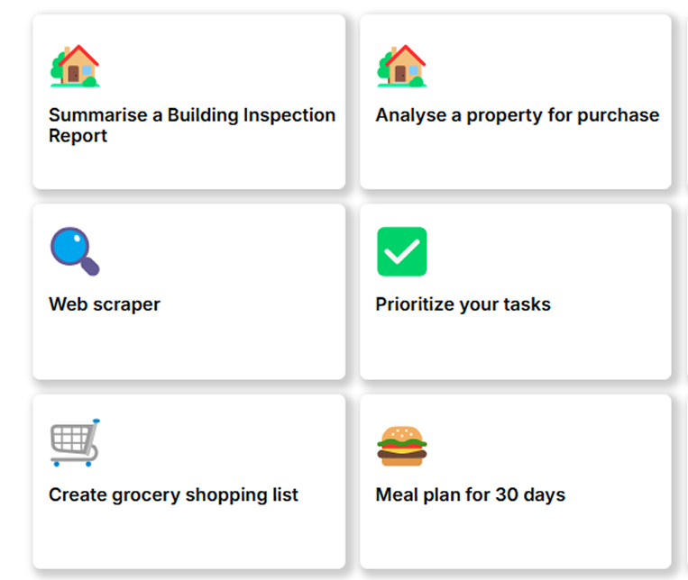 Predefined chat starters for streamlined and efficient user interactions.