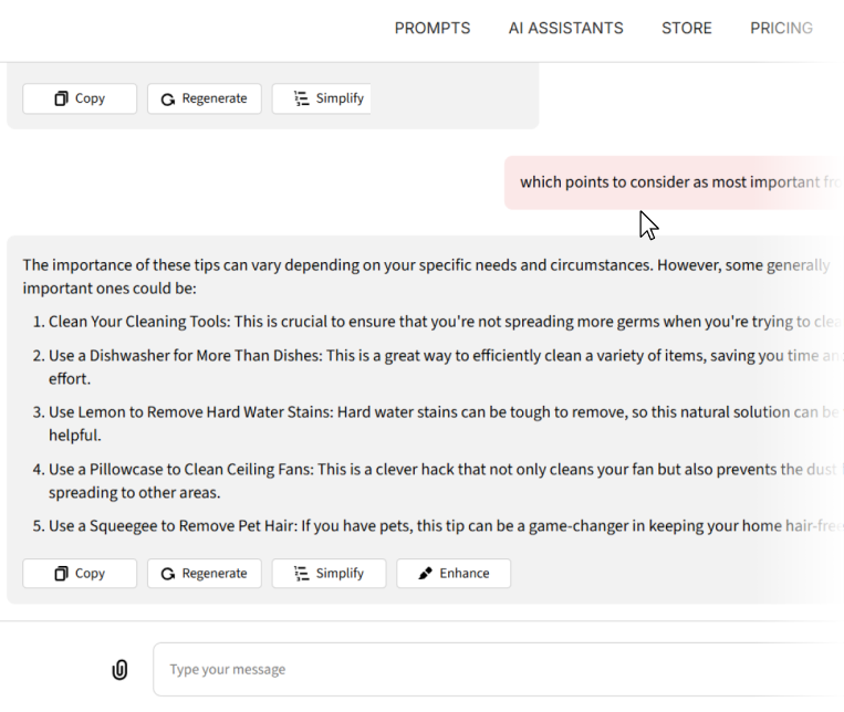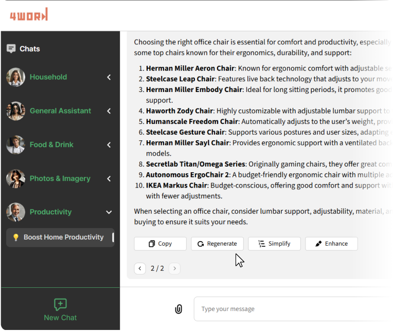 Incorporated tools for optimizing responses, such as regenerating, simplifying, and refining outputs with ease.