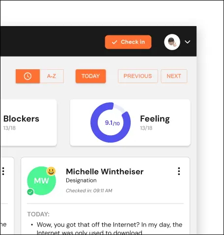 Employees can report blockers, helping management resolve issues proactively. Team members can also share their mood for the day, supporting better morale assessments.