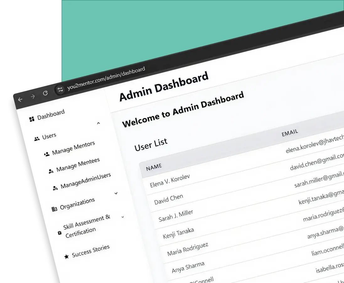 You2Mentor is a mentorship-driven digital platform designed to connect learners, professionals, and aspirants with experienced mentors across multiple domains. Unlike traditional one-way learning systems, You2Mentor was envisioned as a dual-role mentorship ecosystem, where users can act as both mentor and mentee, enabling experience-based, peer-to-peer knowledge sharing.